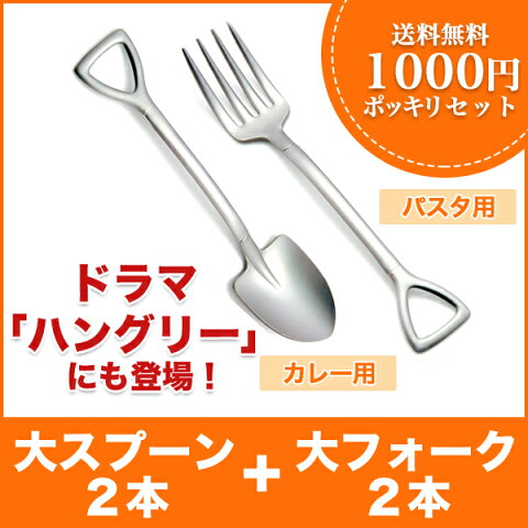 【4本セット】スコップ型シャベル スプーン(カレー用)2本&フォーク(パスタ用)2本 セット The country story ステンレス ミラー仕上げ メール便限定 代引不可