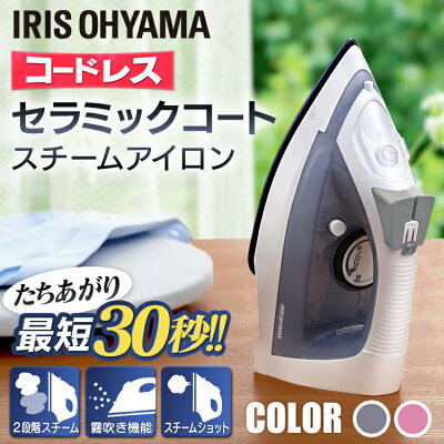 【あす楽】コードレススチームアイロン IRN-CL30C ホワイト/グレー ピンク アイリスオーヤマ アイロン スチーム コードレス しわ伸ばし コードレスアイロン 霧吹き ハンガーにかけたまま かけたまま 衣類 服 スチームアイロン ハンガー
